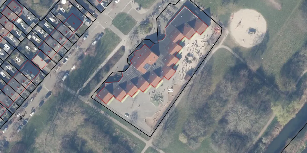 Het perceel waarop Salland 2 staat heeft een oppervlakte van 3505 m². Dit is een zeer groot perceel. De perceeloppervlakte wordt geregistreerd door het Kadaster. Gedetailleerde informatie over de maten van dit perceel kunt u vinden in het rapport Kadastrale kaart met maatvoering van Salland 2.