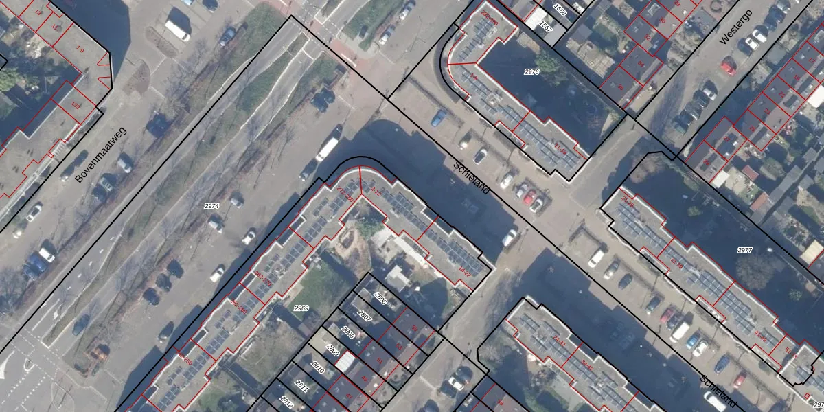 Het perceel waarop Schieland 4 staat heeft een oppervlakte van 2671 m². Dit is een zeer groot perceel. De perceeloppervlakte wordt geregistreerd door het Kadaster. Gedetailleerde informatie over de maten van dit perceel kunt u vinden in het rapport Kadastrale kaart met maatvoering van Schieland 4.