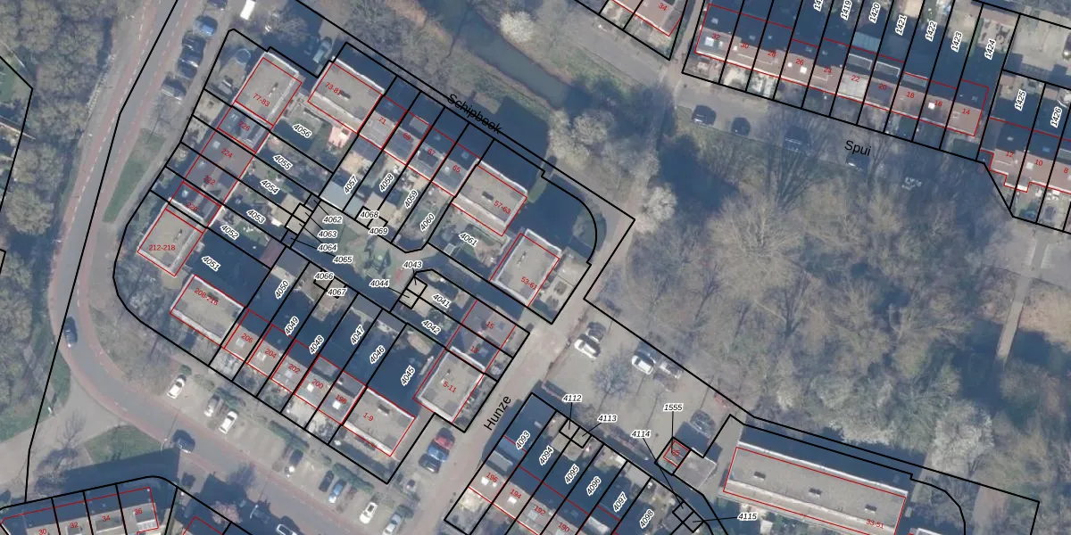 Schipbeek 53 is gelegen op kadastraal perceel HZN00E4061. Deze kadastrale aanduiding is uniek en wordt gebruikt door het Kadaster om eigendomsrechten en andere zakelijke rechten vast te leggen. Het perceel maakt onderdeel uit van de kadastrale gemeente Huizen.