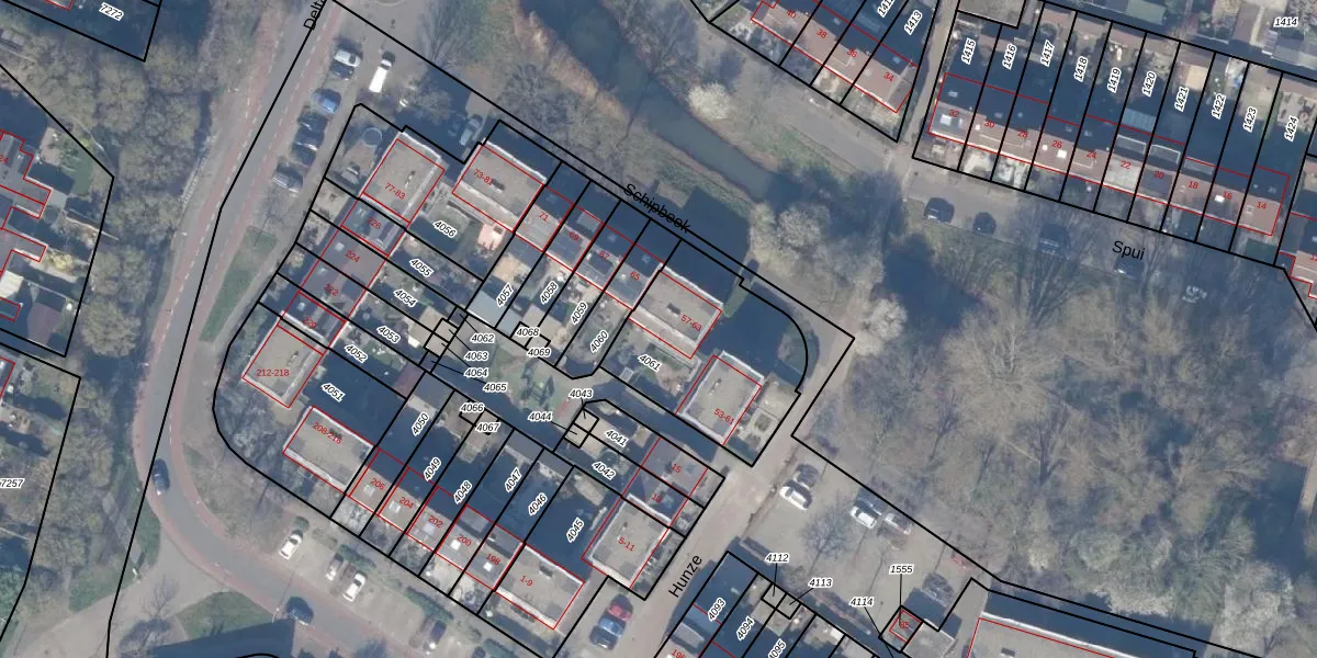 Het perceel waarop Schipbeek 63 staat heeft een oppervlakte van 604 m². Dit is een groot perceel. De perceeloppervlakte wordt geregistreerd door het Kadaster. Gedetailleerde informatie over de maten van dit perceel kunt u vinden in het rapport Kadastrale kaart met maatvoering van Schipbeek 63.