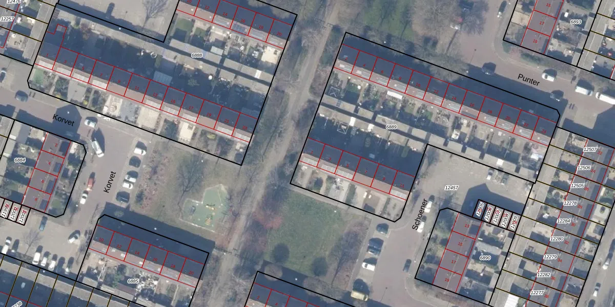 Het perceel waarop Schoener 1 staat heeft een oppervlakte van 2901 m². Dit is een zeer groot perceel. De perceeloppervlakte wordt geregistreerd door het Kadaster. Gedetailleerde informatie over de maten van dit perceel kunt u vinden in het rapport Kadastrale kaart met maatvoering van Schoener 1.