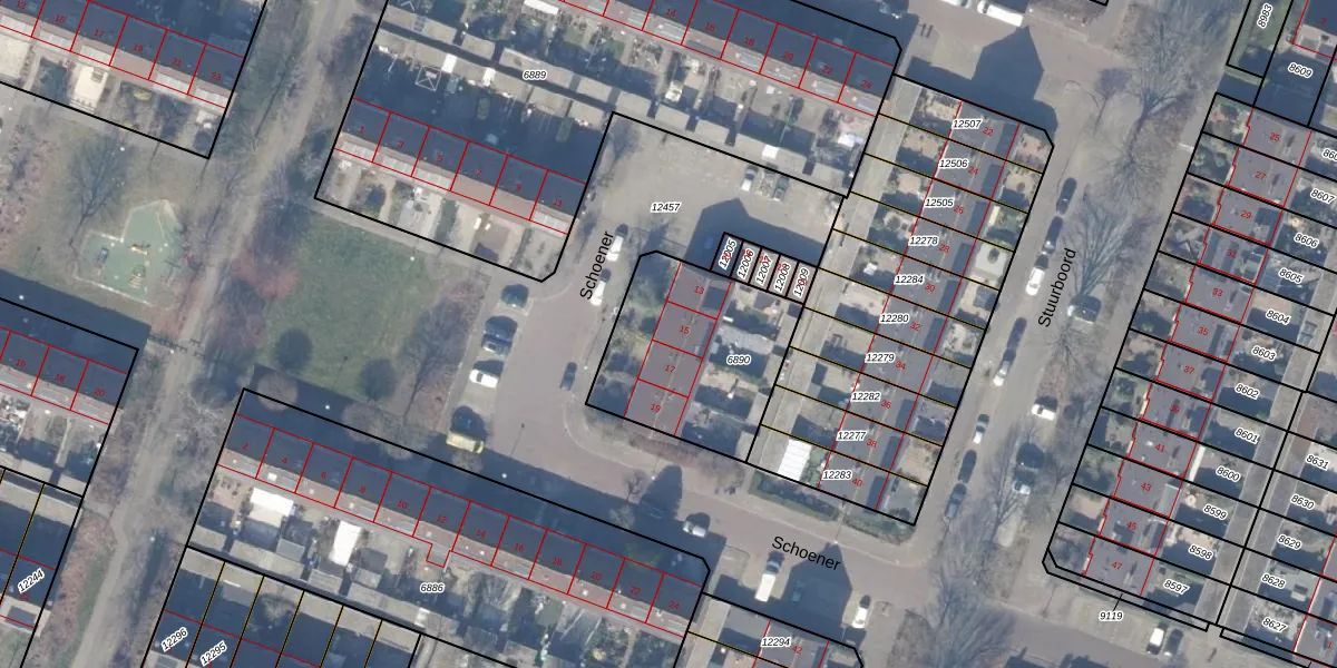 Het perceel waarop Schoener 15 staat heeft een oppervlakte van 640 m². Dit is een groot perceel. De perceeloppervlakte wordt geregistreerd door het Kadaster. Gedetailleerde informatie over de maten van dit perceel kunt u vinden in het rapport Kadastrale kaart met maatvoering van Schoener 15.