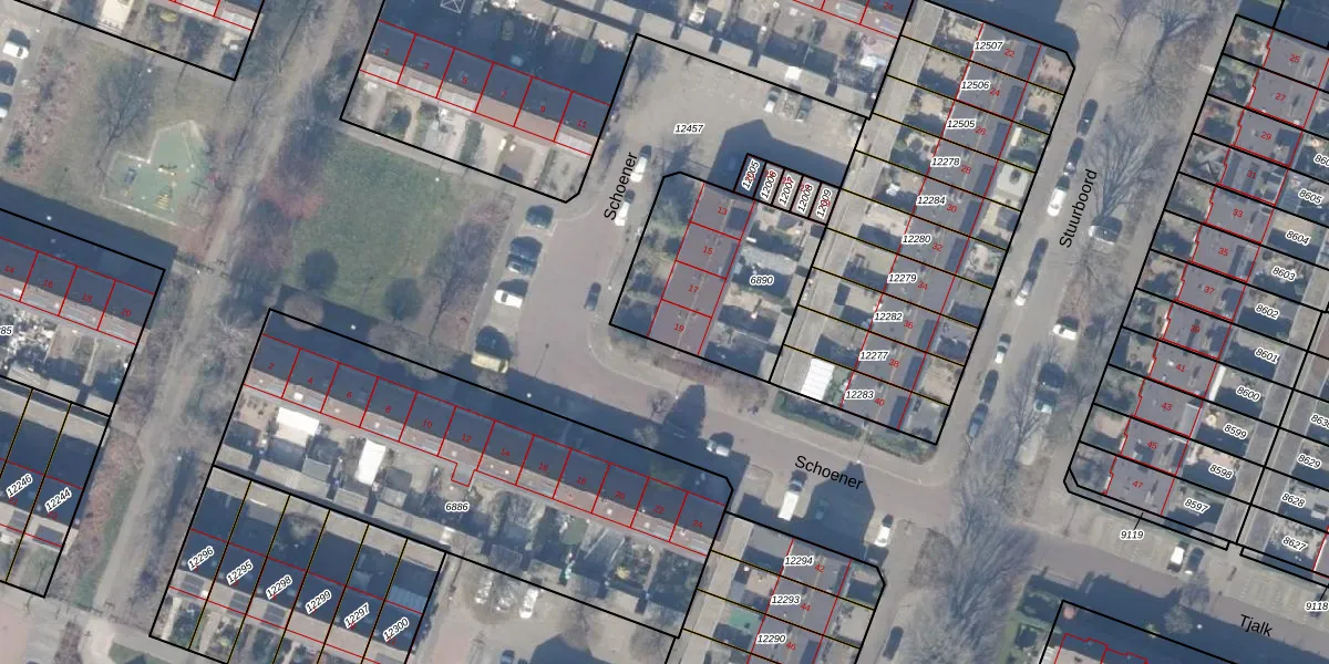 Het perceel waarop Schoener 19 staat heeft een oppervlakte van 640 m². Dit is een groot perceel. De perceeloppervlakte wordt geregistreerd door het Kadaster. Gedetailleerde informatie over de maten van dit perceel kunt u vinden in het rapport Kadastrale kaart met maatvoering van Schoener 19.