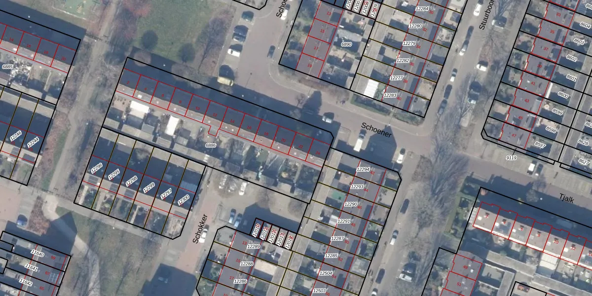Het perceel waarop Schoener 22 staat heeft een oppervlakte van 1876 m². Dit is een zeer groot perceel. De perceeloppervlakte wordt geregistreerd door het Kadaster. Gedetailleerde informatie over de maten van dit perceel kunt u vinden in het rapport Kadastrale kaart met maatvoering van Schoener 22.