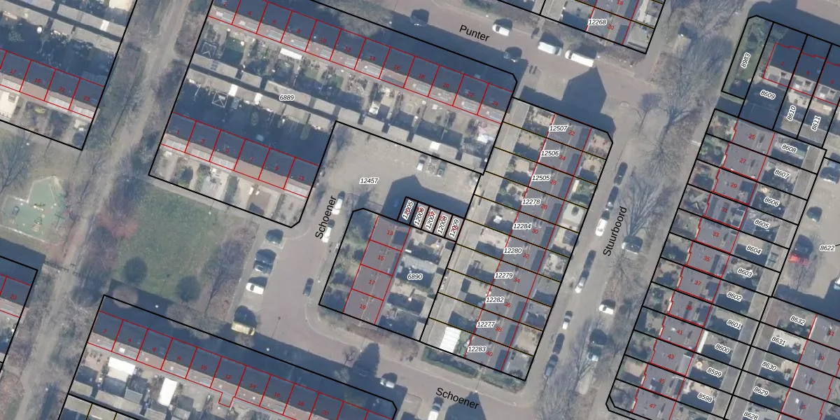Het perceel waarop Schoener 23 staat heeft een oppervlakte van 18 m². Dit is een klein perceel. De perceeloppervlakte wordt geregistreerd door het Kadaster. Gedetailleerde informatie over de maten van dit perceel kunt u vinden in het rapport Kadastrale kaart met maatvoering van Schoener 23.