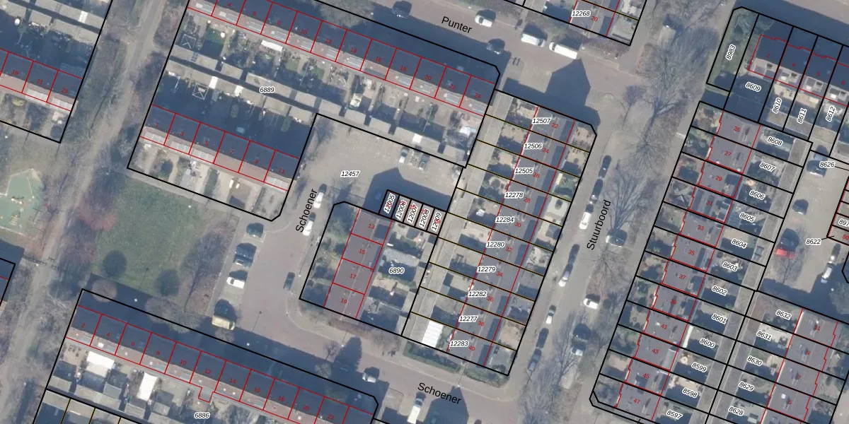 Het perceel waarop Schoener 27 staat heeft een oppervlakte van 18 m². Dit is een klein perceel. De perceeloppervlakte wordt geregistreerd door het Kadaster. Gedetailleerde informatie over de maten van dit perceel kunt u vinden in het rapport Kadastrale kaart met maatvoering van Schoener 27.