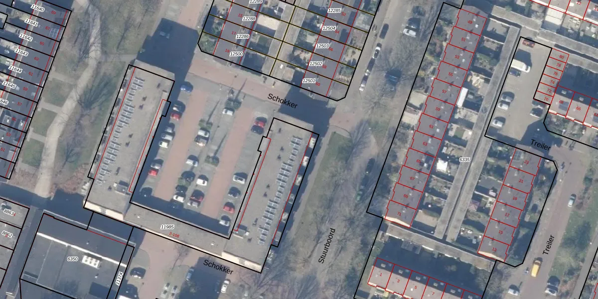 Schokker 106 is gelegen op kadastraal perceel HZN00C11985. Deze kadastrale aanduiding is uniek en wordt gebruikt door het Kadaster om eigendomsrechten en andere zakelijke rechten vast te leggen. Het perceel maakt onderdeel uit van de kadastrale gemeente Huizen.