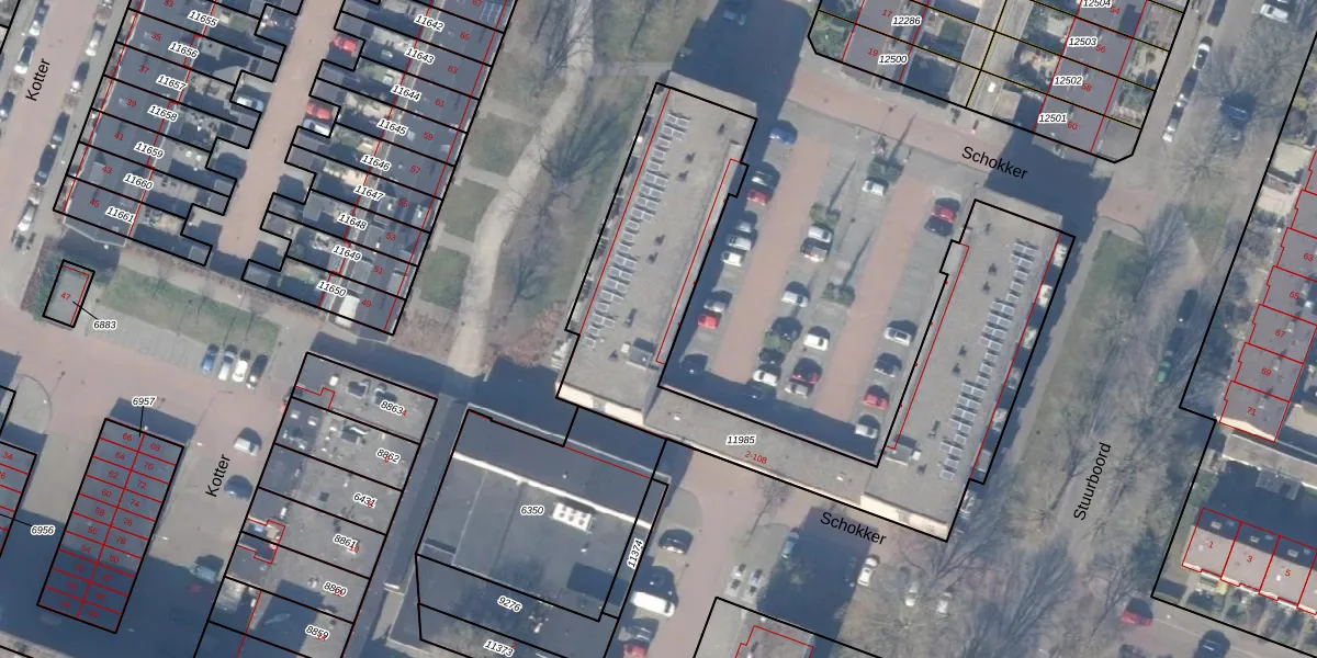 Schokker 12 is gelegen op kadastraal perceel HZN00C11985. Deze kadastrale aanduiding is uniek en wordt gebruikt door het Kadaster om eigendomsrechten en andere zakelijke rechten vast te leggen. Het perceel maakt onderdeel uit van de kadastrale gemeente Huizen.