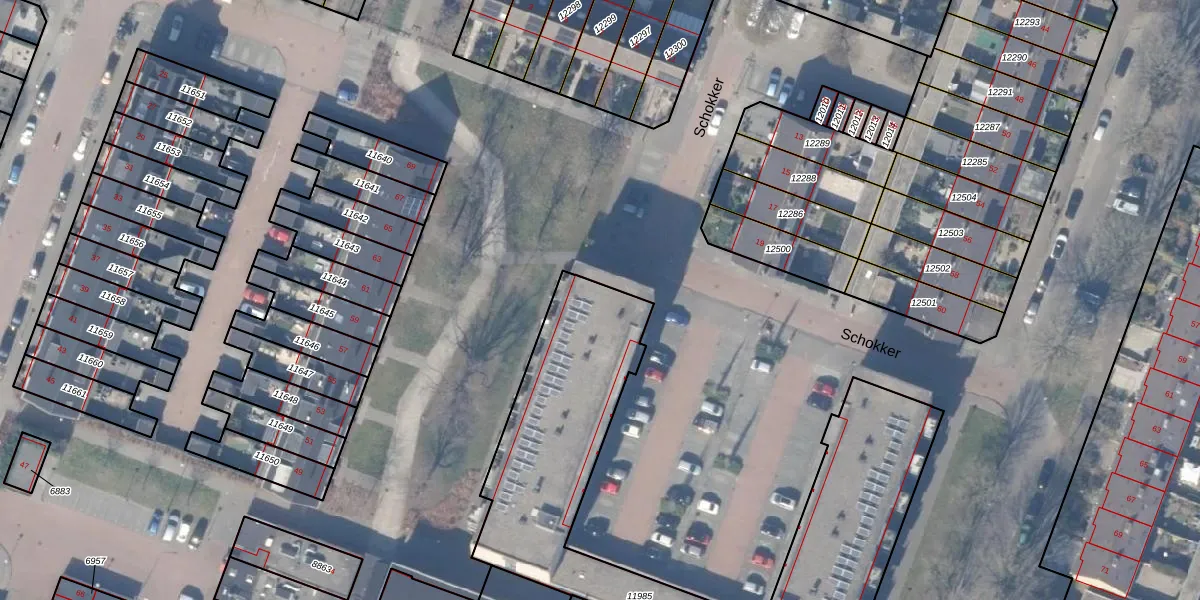 Schokker 40 is gelegen op kadastraal perceel HZN00C11985. Deze kadastrale aanduiding is uniek en wordt gebruikt door het Kadaster om eigendomsrechten en andere zakelijke rechten vast te leggen. Het perceel maakt onderdeel uit van de kadastrale gemeente Huizen.