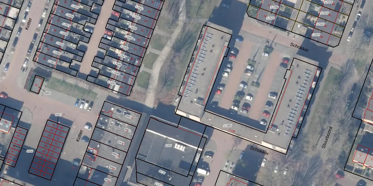 Schokker 44 is gelegen op kadastraal perceel HZN00C11985. Deze kadastrale aanduiding is uniek en wordt gebruikt door het Kadaster om eigendomsrechten en andere zakelijke rechten vast te leggen. Het perceel maakt onderdeel uit van de kadastrale gemeente Huizen.