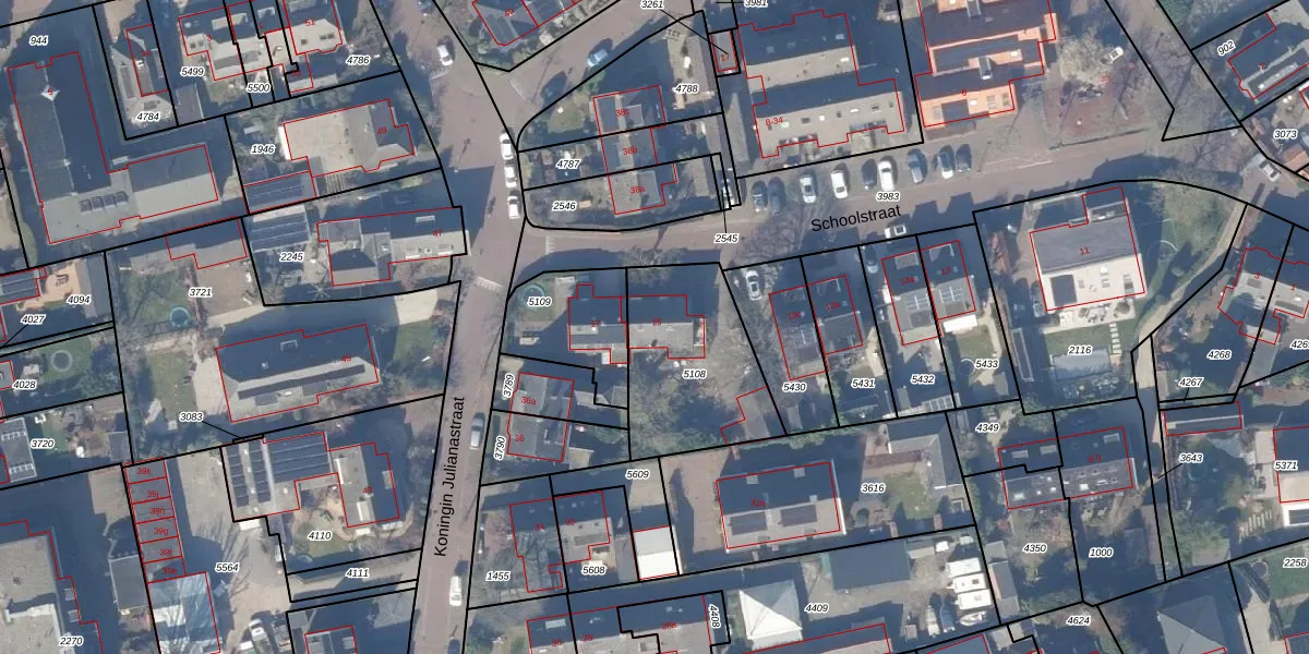 Gebruik de zoekbalk of klik op een perceel voor informatie over de adressen binnen dit perceel.