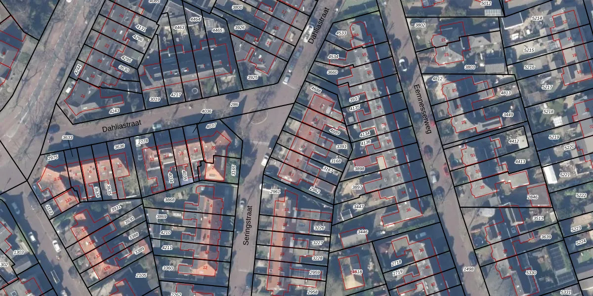 Gebruik de zoekbalk of klik op een perceel voor informatie over de adressen binnen dit perceel.