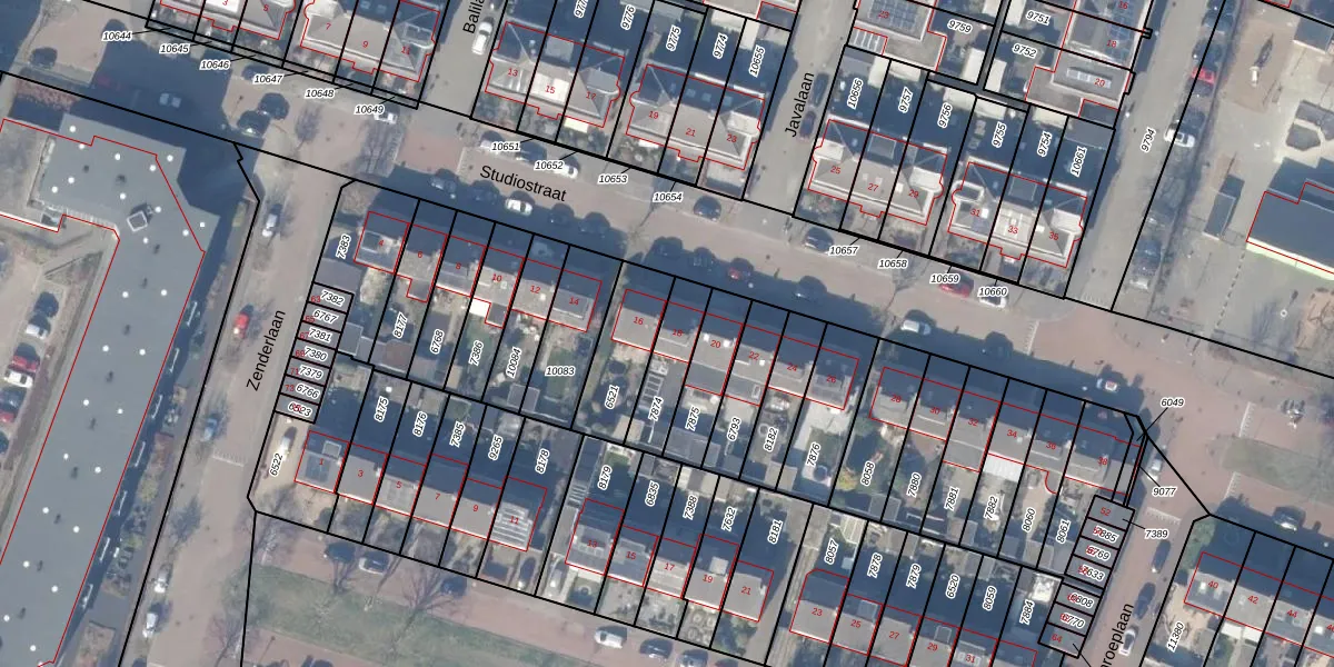 Studiostraat 18 is gelegen op kadastraal perceel HZN00C7874. Deze kadastrale aanduiding is uniek en wordt gebruikt door het Kadaster om eigendomsrechten en andere zakelijke rechten vast te leggen. Het perceel maakt onderdeel uit van de kadastrale gemeente Huizen.