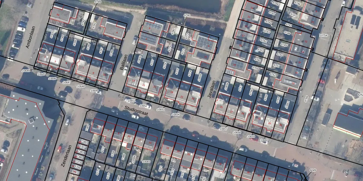 Studiostraat 21 is gelegen op kadastraal perceel HZN00C9774. Deze kadastrale aanduiding is uniek en wordt gebruikt door het Kadaster om eigendomsrechten en andere zakelijke rechten vast te leggen. Het perceel maakt onderdeel uit van de kadastrale gemeente Huizen.