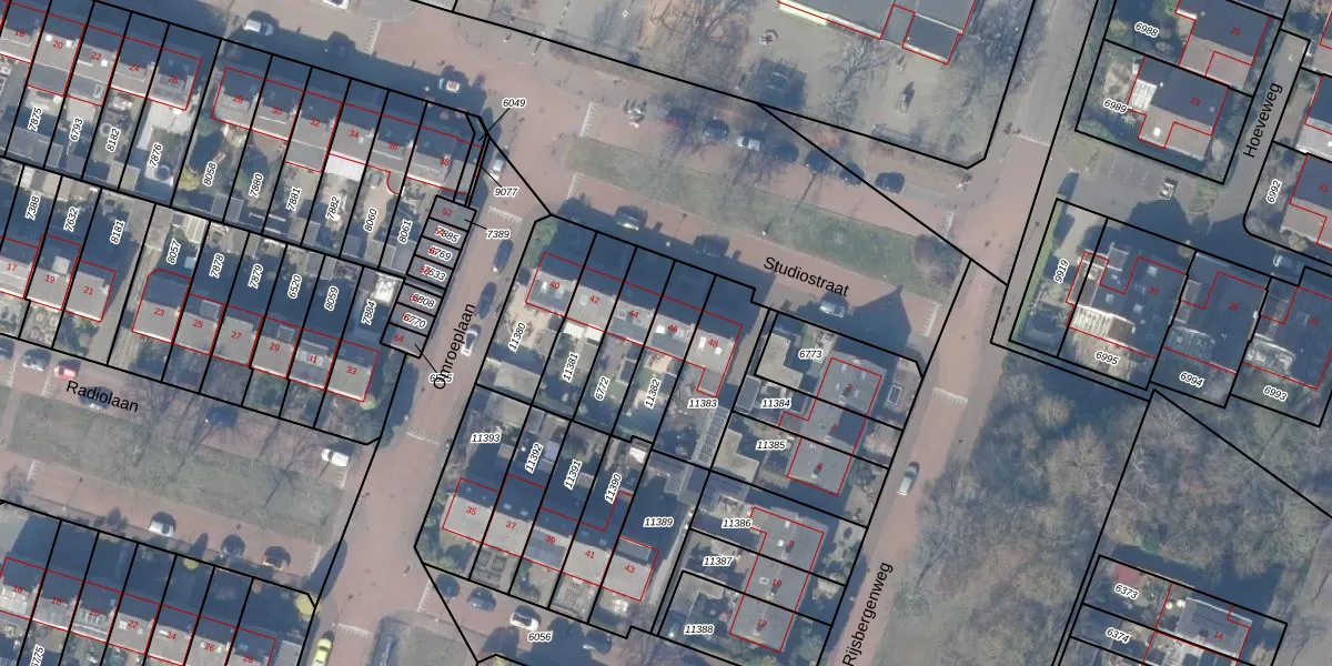 Studiostraat 46 is gelegen op kadastraal perceel HZN00C11382. Deze kadastrale aanduiding is uniek en wordt gebruikt door het Kadaster om eigendomsrechten en andere zakelijke rechten vast te leggen. Het perceel maakt onderdeel uit van de kadastrale gemeente Huizen.
