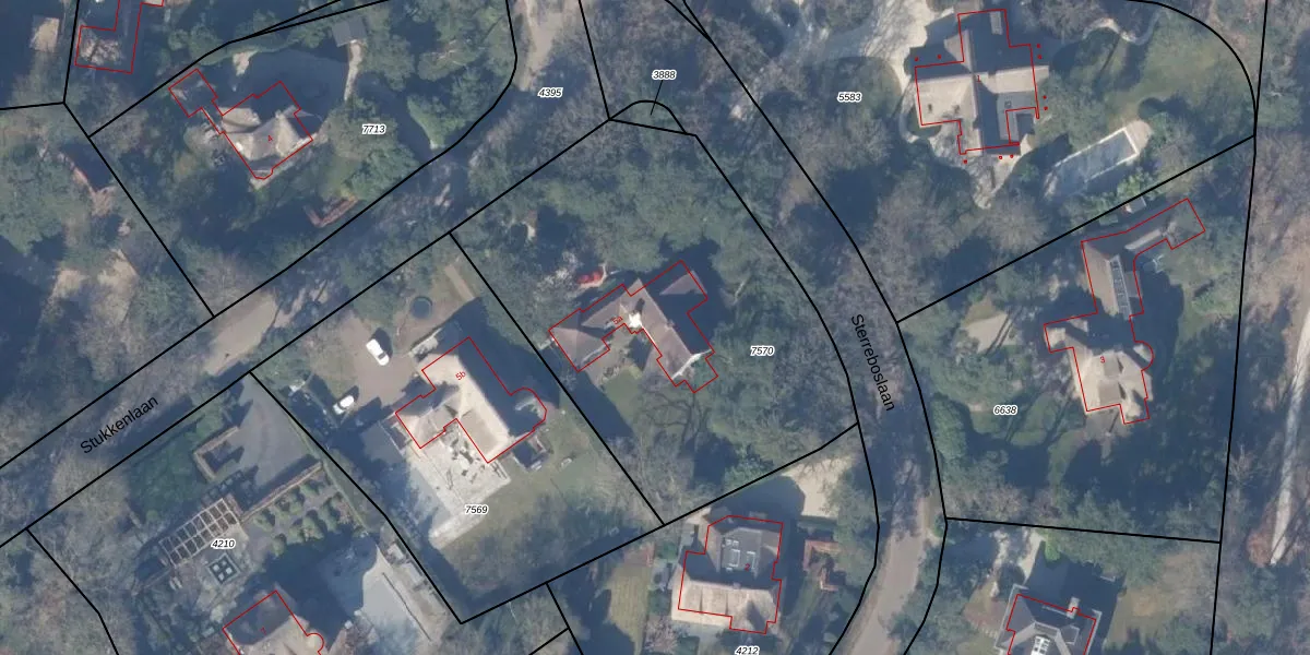 Het perceel waarop Stukkenlaan 5-a staat heeft een oppervlakte van 2187 m². Dit is een zeer groot perceel. De perceeloppervlakte wordt geregistreerd door het Kadaster. Gedetailleerde informatie over de maten van dit perceel kunt u vinden in het rapport Kadastrale kaart met maatvoering van Stukkenlaan 5-a.