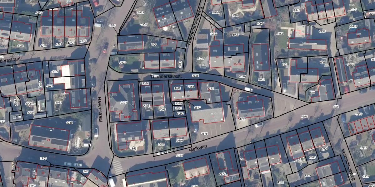 Het perceel waarop Taandersstraat 14 staat heeft een oppervlakte van 83 m². Dit is een klein perceel. De perceeloppervlakte wordt geregistreerd door het Kadaster. Gedetailleerde informatie over de maten van dit perceel kunt u vinden in het rapport Kadastrale kaart met maatvoering van Taandersstraat 14.