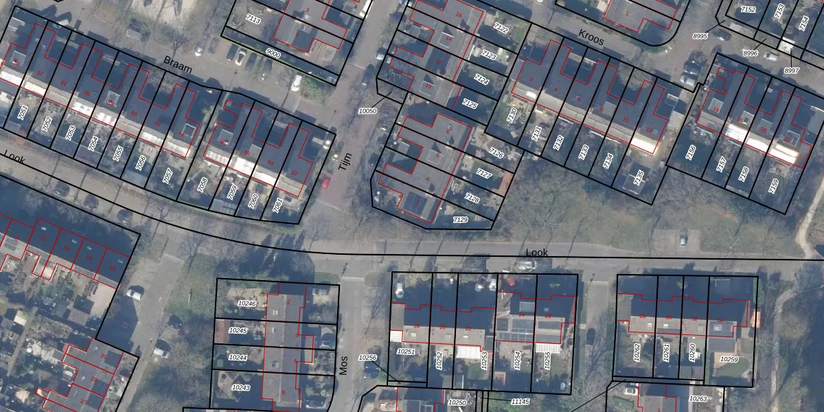 Gebruik de zoekbalk of klik op een perceel voor informatie over de adressen binnen dit perceel.