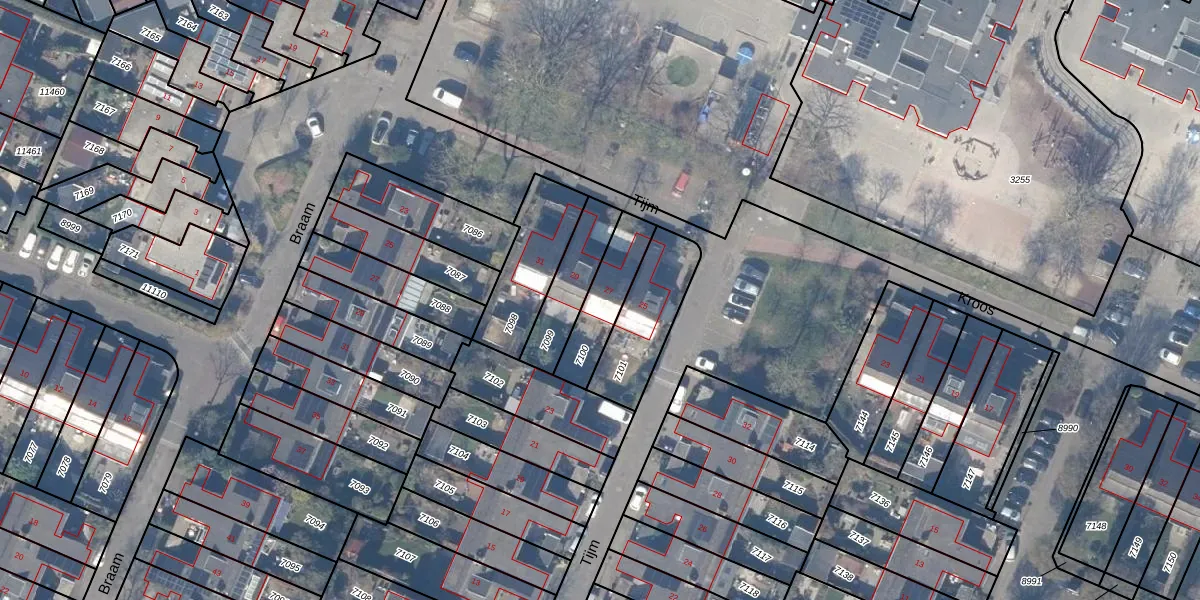 Het perceel waarop Tijm 27 staat heeft een oppervlakte van 185 m². Dit is een middelgroot perceel. De perceeloppervlakte wordt geregistreerd door het Kadaster. Gedetailleerde informatie over de maten van dit perceel kunt u vinden in het rapport Kadastrale kaart met maatvoering van Tijm 27.