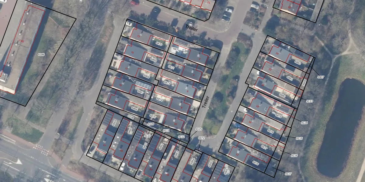 Het perceel waarop Treiler 6 staat heeft een oppervlakte van 262 m². Dit is een middelgroot perceel. De perceeloppervlakte wordt geregistreerd door het Kadaster. Gedetailleerde informatie over de maten van dit perceel kunt u vinden in het rapport Kadastrale kaart met maatvoering van Treiler 6.