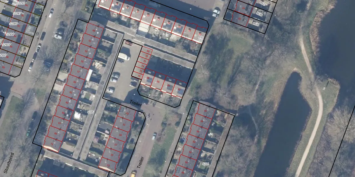 Het perceel waarop Treiler 62 staat heeft een oppervlakte van 6650 m². Dit is een zeer groot perceel. De perceeloppervlakte wordt geregistreerd door het Kadaster. Gedetailleerde informatie over de maten van dit perceel kunt u vinden in het rapport Kadastrale kaart met maatvoering van Treiler 62.