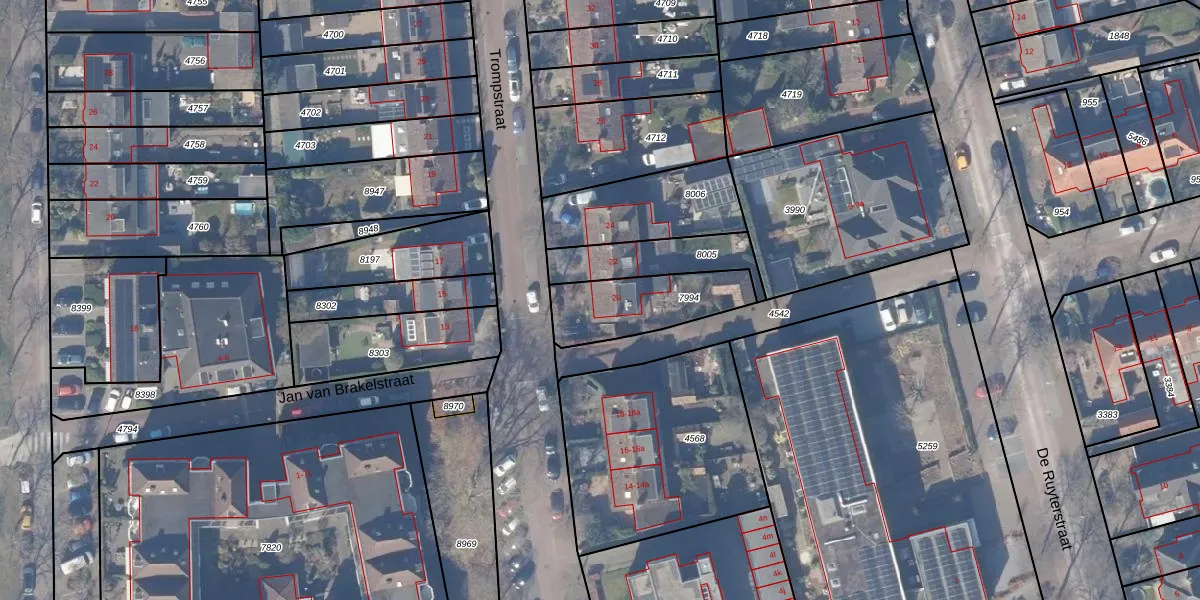 Trompstraat 20 is gelegen op kadastraal perceel HZN00B7994. Deze kadastrale aanduiding is uniek en wordt gebruikt door het Kadaster om eigendomsrechten en andere zakelijke rechten vast te leggen. Het perceel maakt onderdeel uit van de kadastrale gemeente Huizen.