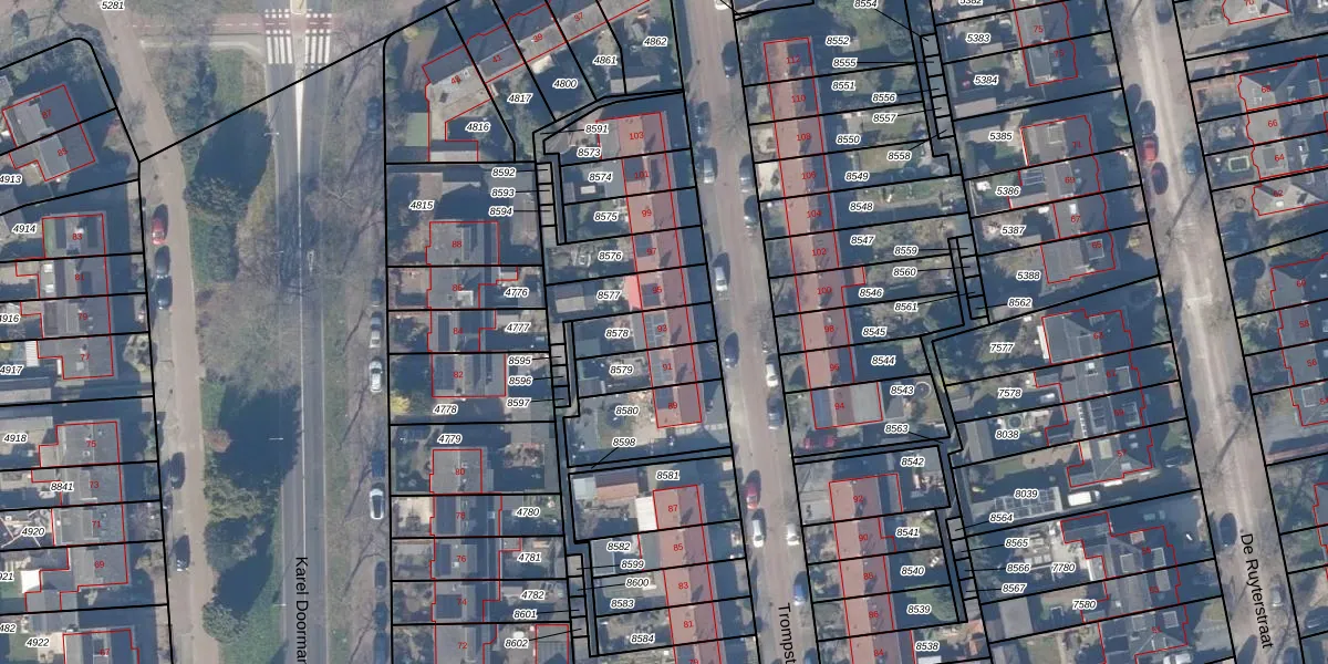 Het perceel waarop Trompstraat 93 staat heeft een oppervlakte van 125 m². Dit is een middelgroot perceel. De perceeloppervlakte wordt geregistreerd door het Kadaster. Gedetailleerde informatie over de maten van dit perceel kunt u vinden in het rapport Kadastrale kaart met maatvoering van Trompstraat 93.