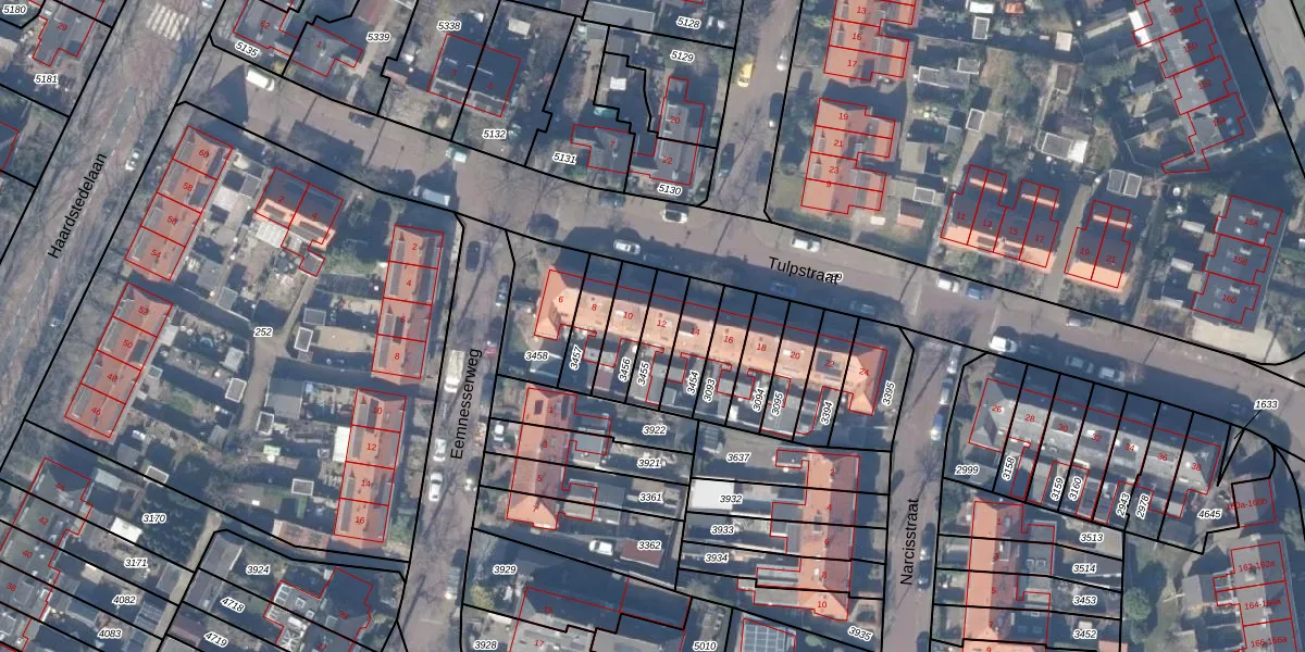 Tulpstraat 12 is gelegen op kadastraal perceel HZN00D3455. Deze kadastrale aanduiding is uniek en wordt gebruikt door het Kadaster om eigendomsrechten en andere zakelijke rechten vast te leggen. Het perceel maakt onderdeel uit van de kadastrale gemeente Huizen.