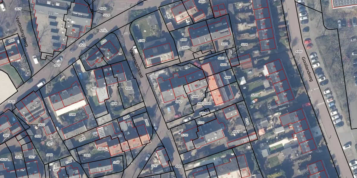 Het perceel waarop Valkenaarstraat 83 staat heeft een oppervlakte van 634 m². Dit is een groot perceel. De perceeloppervlakte wordt geregistreerd door het Kadaster. Gedetailleerde informatie over de maten van dit perceel kunt u vinden in het rapport Kadastrale kaart met maatvoering van Valkenaarstraat 83.