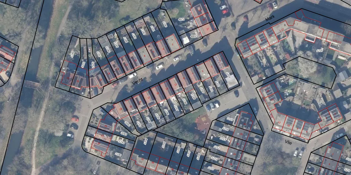 Gebruik de zoekbalk of klik op een perceel voor informatie over de adressen binnen dit perceel.