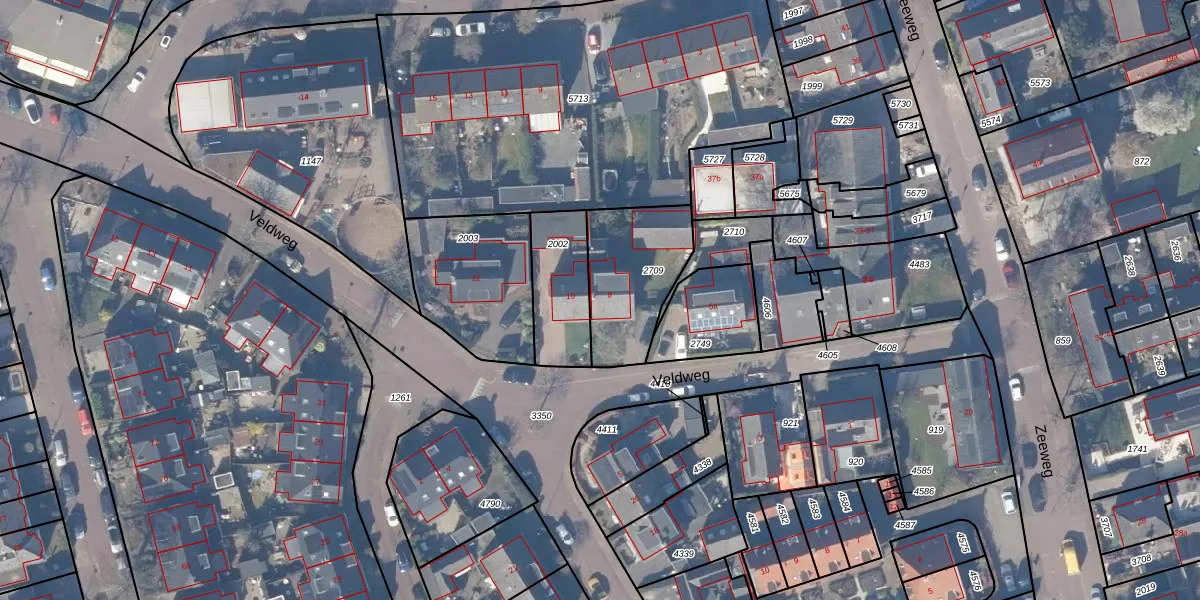 Veldweg 8 is gelegen op kadastraal perceel HZN00D2709. Deze kadastrale aanduiding is uniek en wordt gebruikt door het Kadaster om eigendomsrechten en andere zakelijke rechten vast te leggen. Het perceel maakt onderdeel uit van de kadastrale gemeente Huizen.