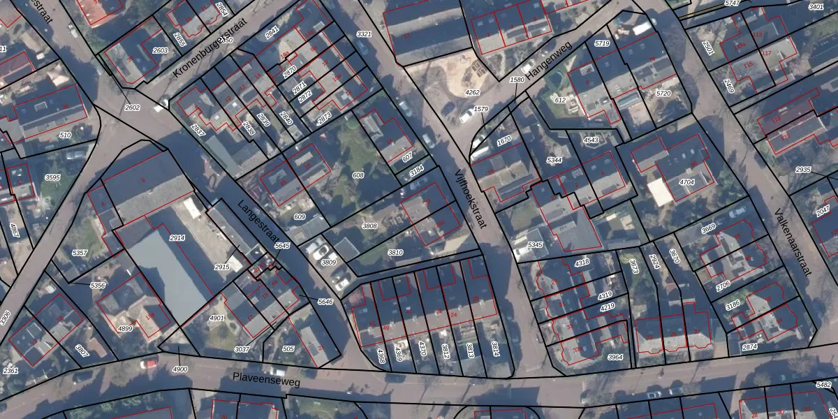 Vijfhoekstraat 20 is gelegen op kadastraal perceel HZN00D3808. Deze kadastrale aanduiding is uniek en wordt gebruikt door het Kadaster om eigendomsrechten en andere zakelijke rechten vast te leggen. Het perceel maakt onderdeel uit van de kadastrale gemeente Huizen.