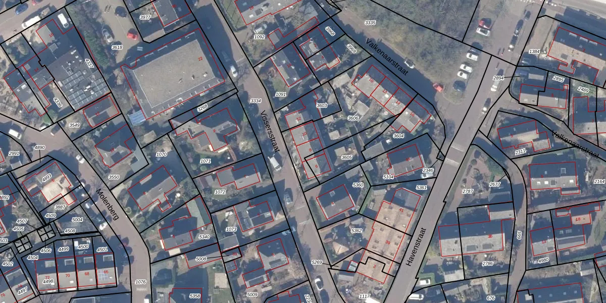 Het perceel waarop Vissersstraat 8 staat heeft een oppervlakte van 688 m². Dit is een groot perceel. De perceeloppervlakte wordt geregistreerd door het Kadaster. Gedetailleerde informatie over de maten van dit perceel kunt u vinden in het rapport Kadastrale kaart met maatvoering van Vissersstraat 8.