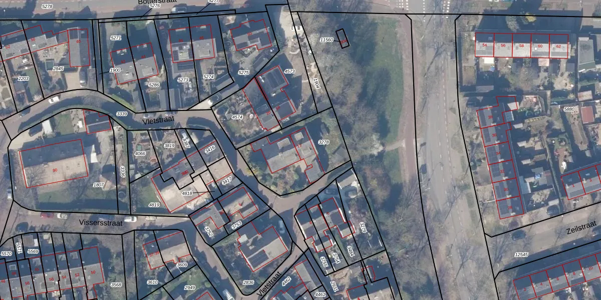 Het perceel waarop Vletstraat 12 staat heeft een oppervlakte van 633 m². Dit is een groot perceel. De perceeloppervlakte wordt geregistreerd door het Kadaster. Gedetailleerde informatie over de maten van dit perceel kunt u vinden in het rapport Kadastrale kaart met maatvoering van Vletstraat 12.