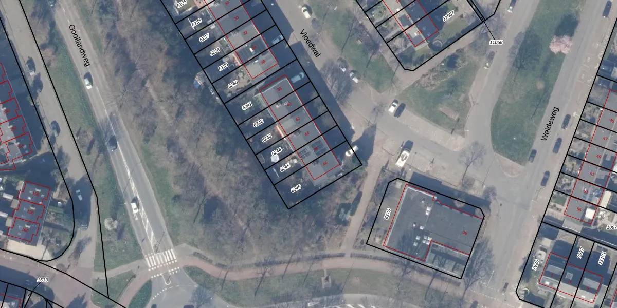 Vloedwal 46 is gelegen op kadastraal perceel HZN00C6245. Deze kadastrale aanduiding is uniek en wordt gebruikt door het Kadaster om eigendomsrechten en andere zakelijke rechten vast te leggen. Het perceel maakt onderdeel uit van de kadastrale gemeente Huizen.