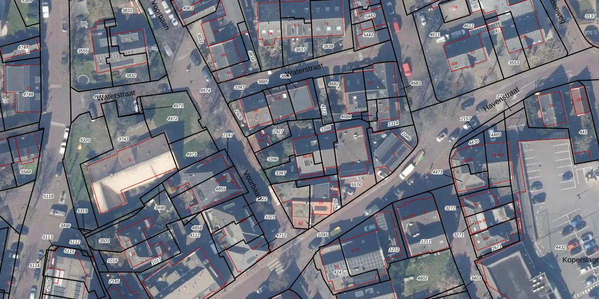Gebruik de zoekbalk of klik op een perceel voor informatie over de adressen binnen dit perceel.