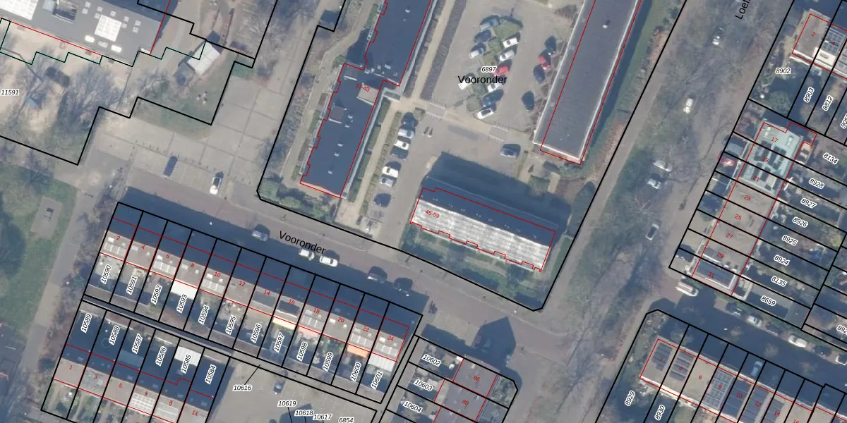 Vooronder 45-a is gelegen op kadastraal perceel HZN00C6897. Deze kadastrale aanduiding is uniek en wordt gebruikt door het Kadaster om eigendomsrechten en andere zakelijke rechten vast te leggen. Het perceel maakt onderdeel uit van de kadastrale gemeente Huizen.