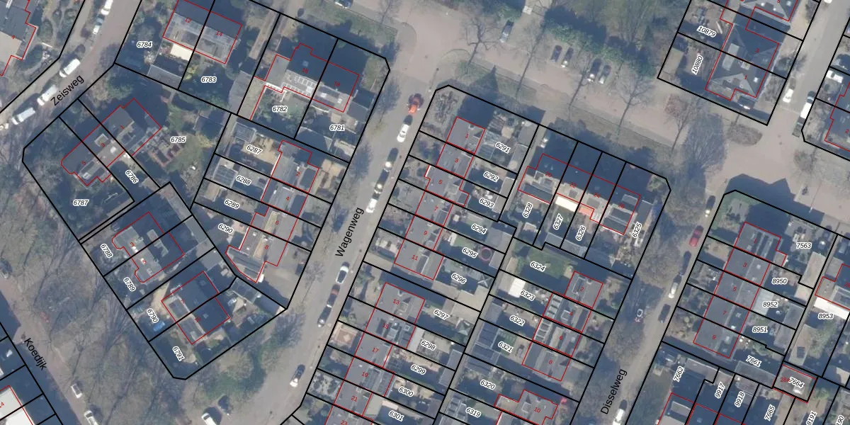 Gebruik de zoekbalk of klik op een perceel voor informatie over de adressen binnen dit perceel.