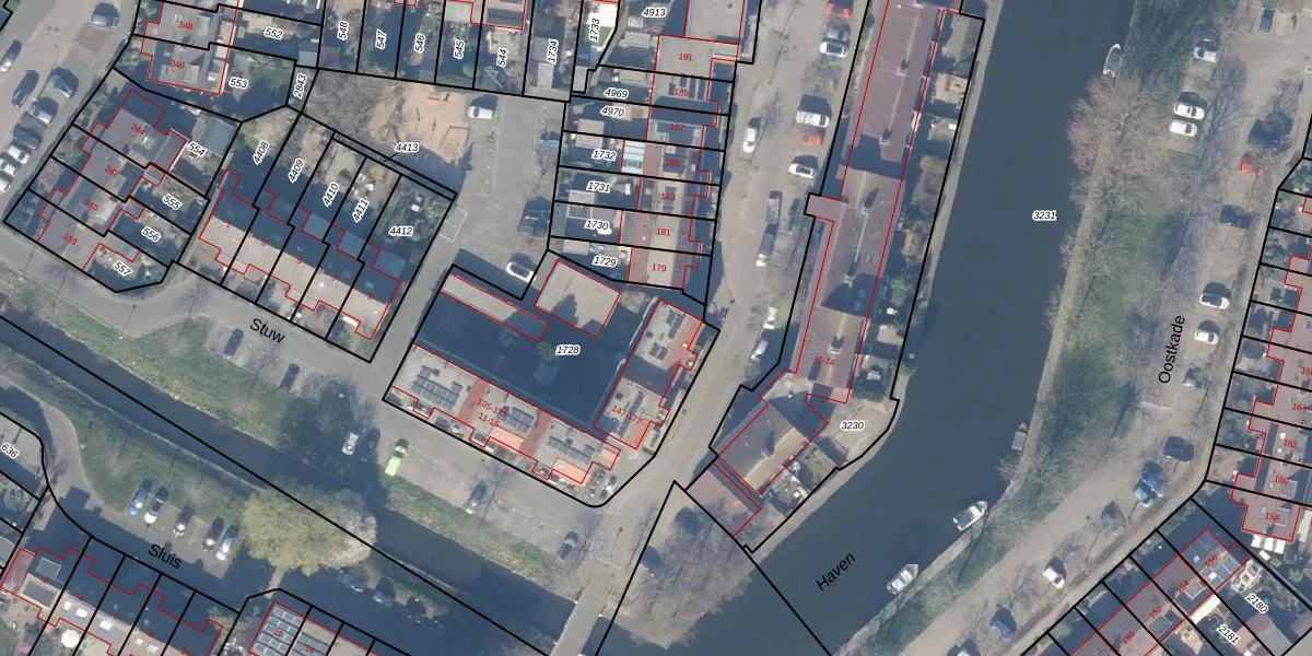 Het adres ligt op het perceel HZN00-E-1728, dat zich in de kadastrale gemeente Huizen bevindt. De gemiddelde perceelgrootte in Huizen is 1437,02 m². Dit perceel is kleiner: de perceeloppervlakte bedraagt 1220 m². De grootste perceeloppervlakte in de kadastrale gemeente is 4,26 km². De kleinste oppervlakte bedraagt 0 m². Er zijn 25 adressen aanwezig op het perceel. De laatste wijziging in het de Basisregistratie Kadaster (BRK) was op 06-07-2000.