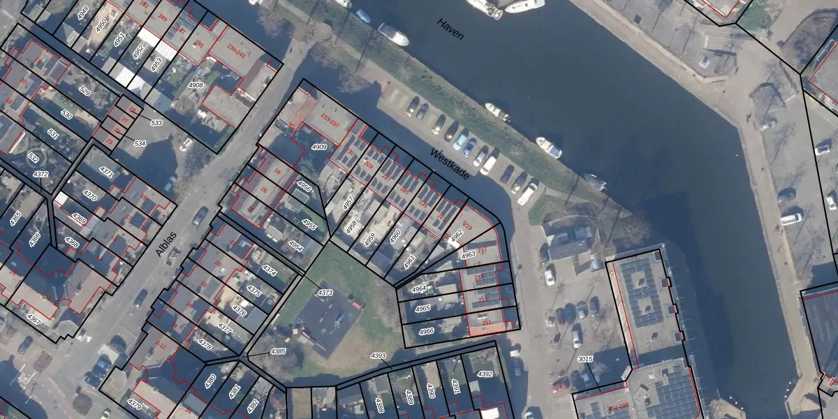 Westkade 223 is gelegen op kadastraal perceel HZN00E4960. Deze kadastrale aanduiding is uniek en wordt gebruikt door het Kadaster om eigendomsrechten en andere zakelijke rechten vast te leggen. Het perceel maakt onderdeel uit van de kadastrale gemeente Huizen.