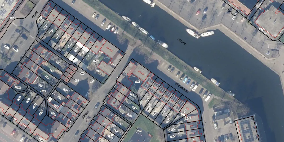 Westkade 235 is gelegen op kadastraal perceel HZN00E4909. Deze kadastrale aanduiding is uniek en wordt gebruikt door het Kadaster om eigendomsrechten en andere zakelijke rechten vast te leggen. Het perceel maakt onderdeel uit van de kadastrale gemeente Huizen.