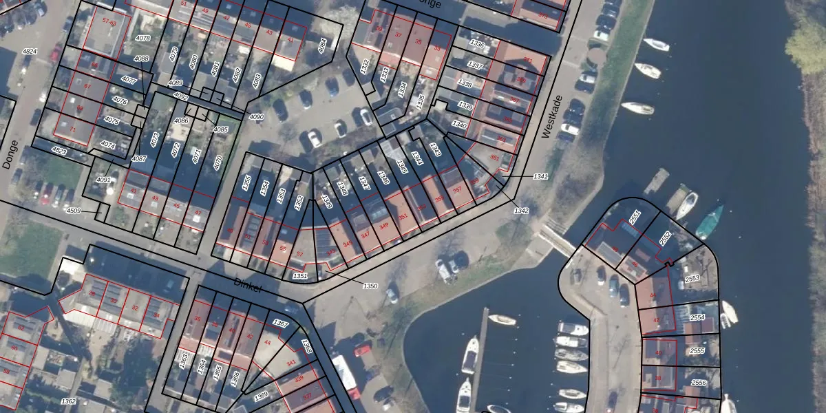 Westkade 353 is gelegen op kadastraal perceel HZN00E1345. Deze kadastrale aanduiding is uniek en wordt gebruikt door het Kadaster om eigendomsrechten en andere zakelijke rechten vast te leggen. Het perceel maakt onderdeel uit van de kadastrale gemeente Huizen.