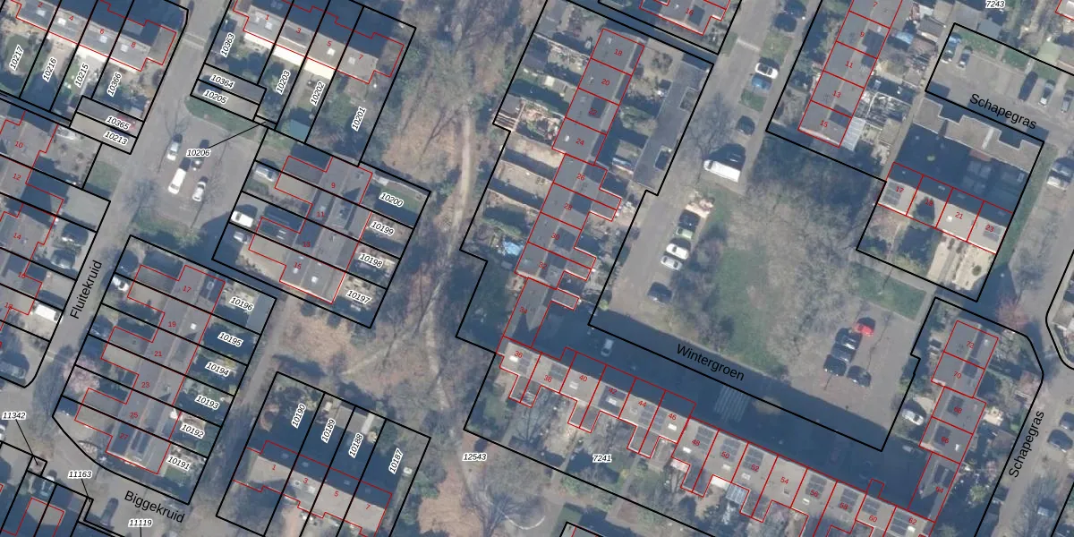 Wintergroen 32 is gelegen op kadastraal perceel HZN00C7241. Deze kadastrale aanduiding is uniek en wordt gebruikt door het Kadaster om eigendomsrechten en andere zakelijke rechten vast te leggen. Het perceel maakt onderdeel uit van de kadastrale gemeente Huizen.
