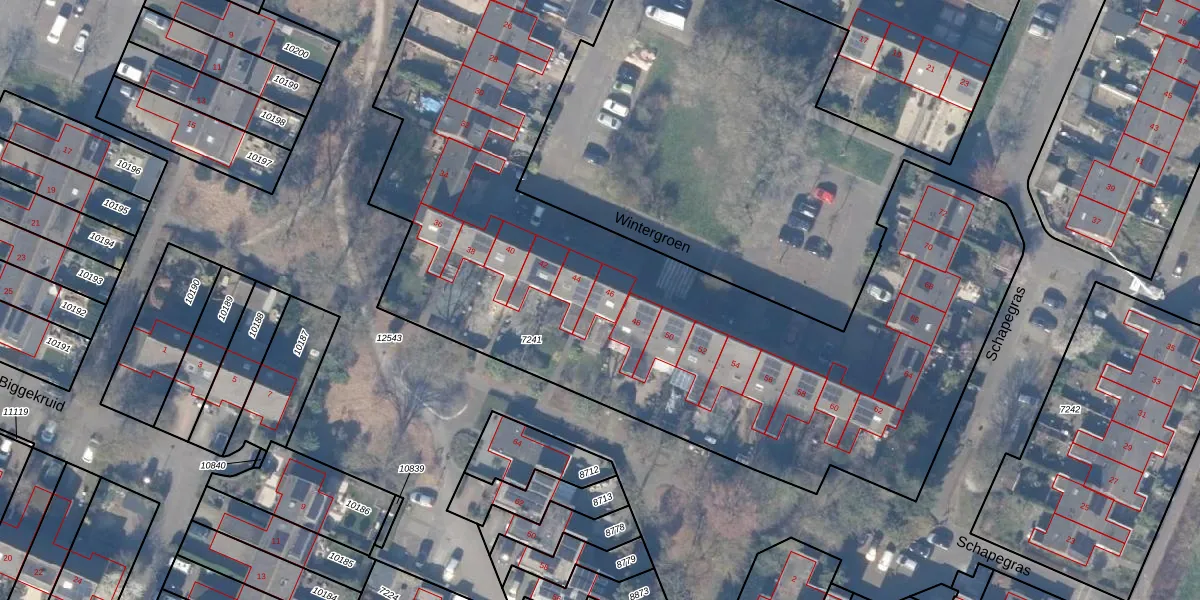 Wintergroen 46 is gelegen op kadastraal perceel HZN00C7241. Deze kadastrale aanduiding is uniek en wordt gebruikt door het Kadaster om eigendomsrechten en andere zakelijke rechten vast te leggen. Het perceel maakt onderdeel uit van de kadastrale gemeente Huizen.