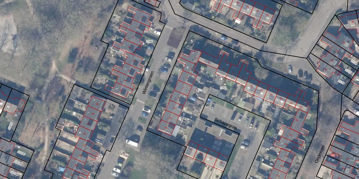 Wintergroen 7 is gelegen op kadastraal perceel HZN00C7243. Deze kadastrale aanduiding is uniek en wordt gebruikt door het Kadaster om eigendomsrechten en andere zakelijke rechten vast te leggen. Het perceel maakt onderdeel uit van de kadastrale gemeente Huizen.