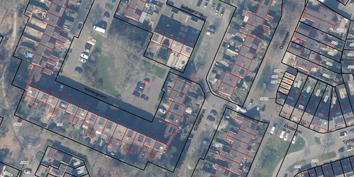 Wintergroen 72 is gelegen op kadastraal perceel HZN00C7241. Deze kadastrale aanduiding is uniek en wordt gebruikt door het Kadaster om eigendomsrechten en andere zakelijke rechten vast te leggen. Het perceel maakt onderdeel uit van de kadastrale gemeente Huizen.