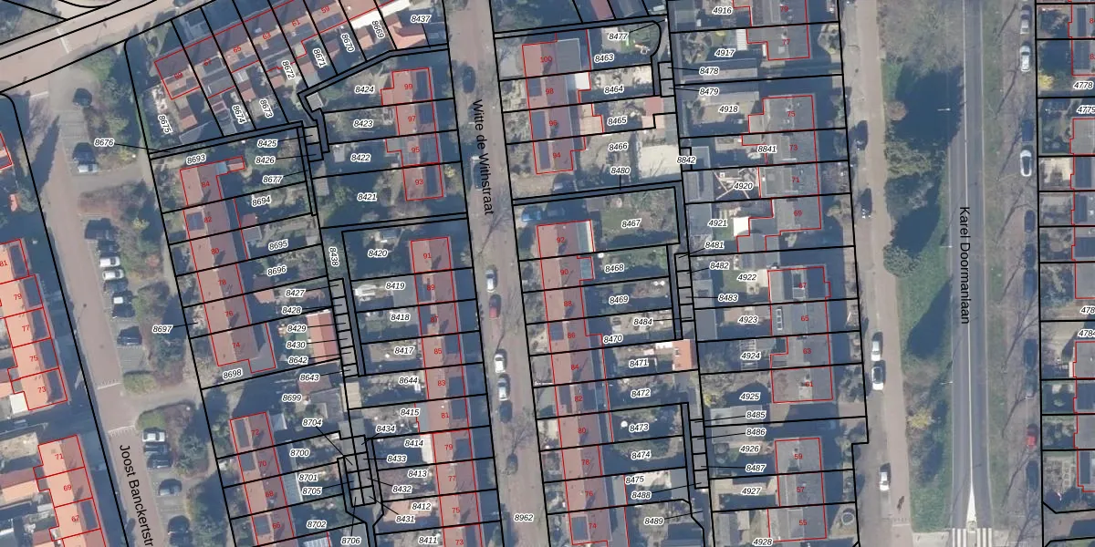 Het perceel waarop Witte de Withstraat 90 staat heeft een oppervlakte van 158 m². Dit is een middelgroot perceel. De perceeloppervlakte wordt geregistreerd door het Kadaster. Gedetailleerde informatie over de maten van dit perceel kunt u vinden in het rapport Kadastrale kaart met maatvoering van Witte de Withstraat 90.
