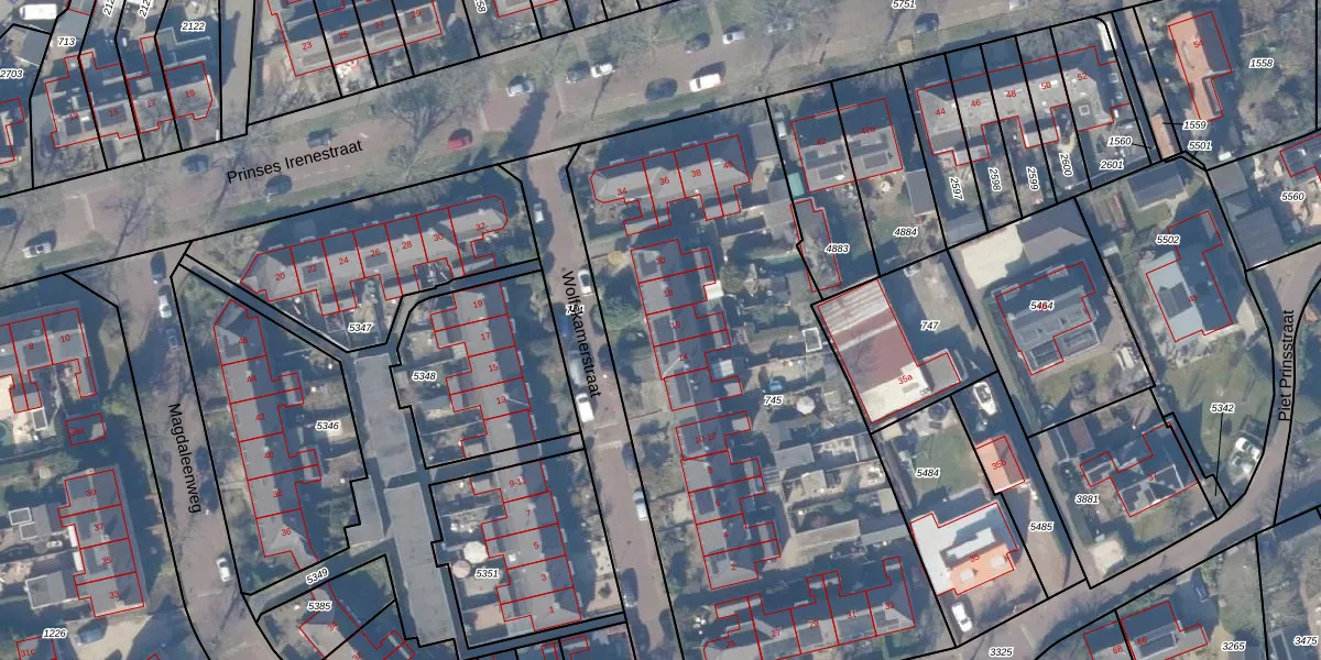Het perceel waarop Wolfskamerstraat 16 staat heeft een oppervlakte van 3080 m². Dit is een zeer groot perceel. De perceeloppervlakte wordt geregistreerd door het Kadaster. Gedetailleerde informatie over de maten van dit perceel kunt u vinden in het rapport Kadastrale kaart met maatvoering van Wolfskamerstraat 16.