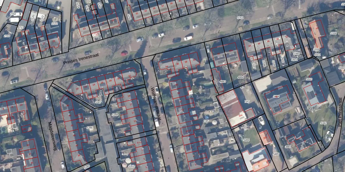 Het perceel waarop Wolfskamerstraat 20 staat heeft een oppervlakte van 3080 m². Dit is een zeer groot perceel. De perceeloppervlakte wordt geregistreerd door het Kadaster. Gedetailleerde informatie over de maten van dit perceel kunt u vinden in het rapport Kadastrale kaart met maatvoering van Wolfskamerstraat 20.