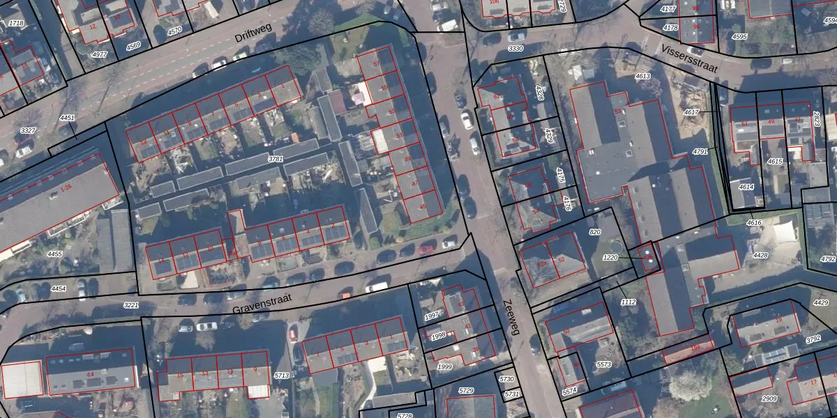 Zeeweg 45 is gelegen op kadastraal perceel HZN00D3781. Deze kadastrale aanduiding is uniek en wordt gebruikt door het Kadaster om eigendomsrechten en andere zakelijke rechten vast te leggen. Het perceel maakt onderdeel uit van de kadastrale gemeente Huizen.